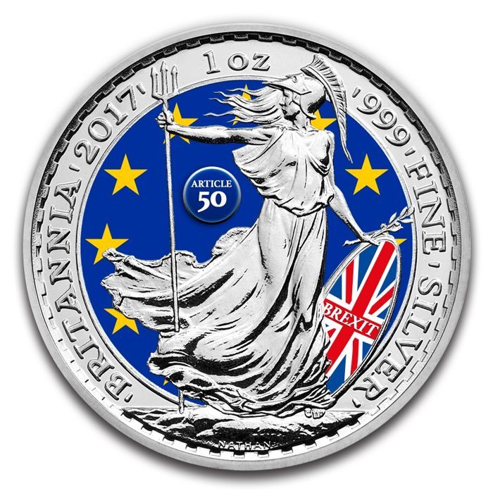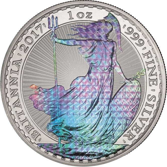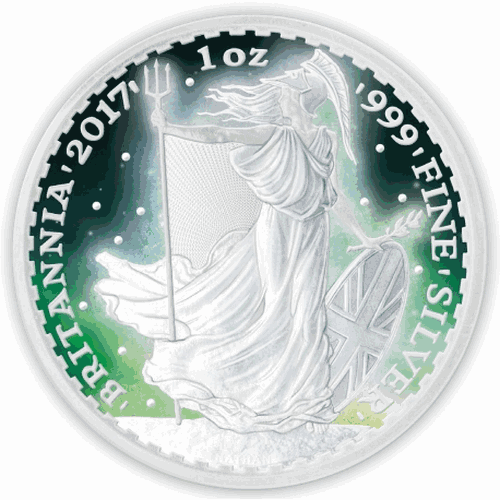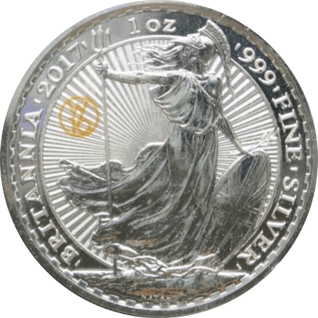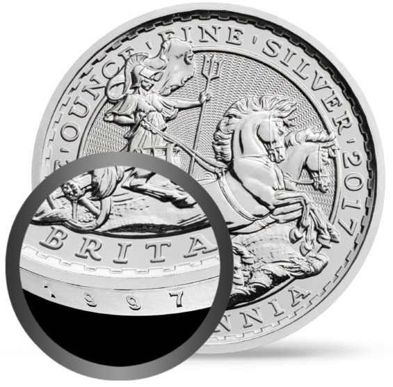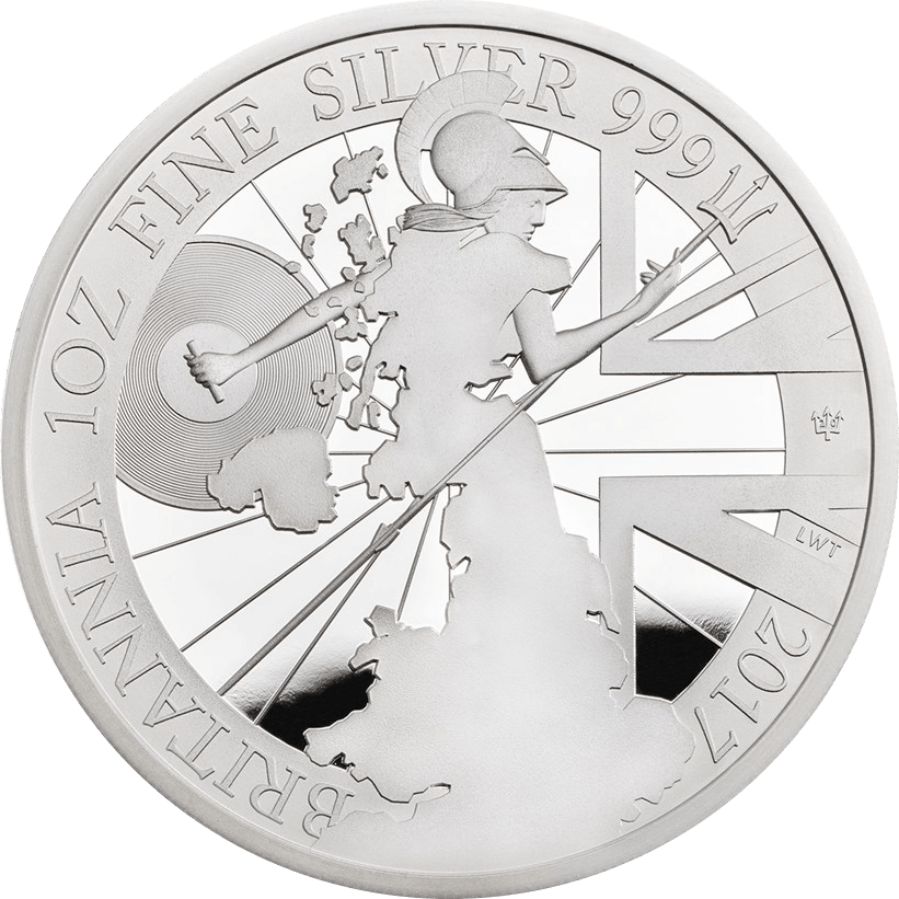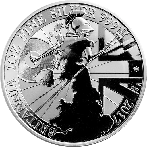 2017 One Ounce Silver Britannia coin celebrating the 20th anniversary of the Silver Britannia. This version of the Silver Britannia features a chariot design from the 1997 coin and unique rim with "1997 - 2017" etched on the side. This coin is made with .999 pure silver and weighs 31.10 grams. This 1oz silver Britannia coin has a different design than the normal issue Britannia and was issued in much lower numbers.