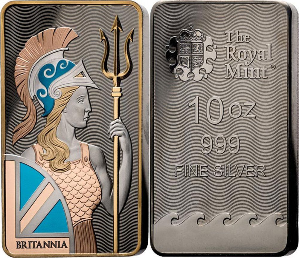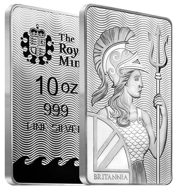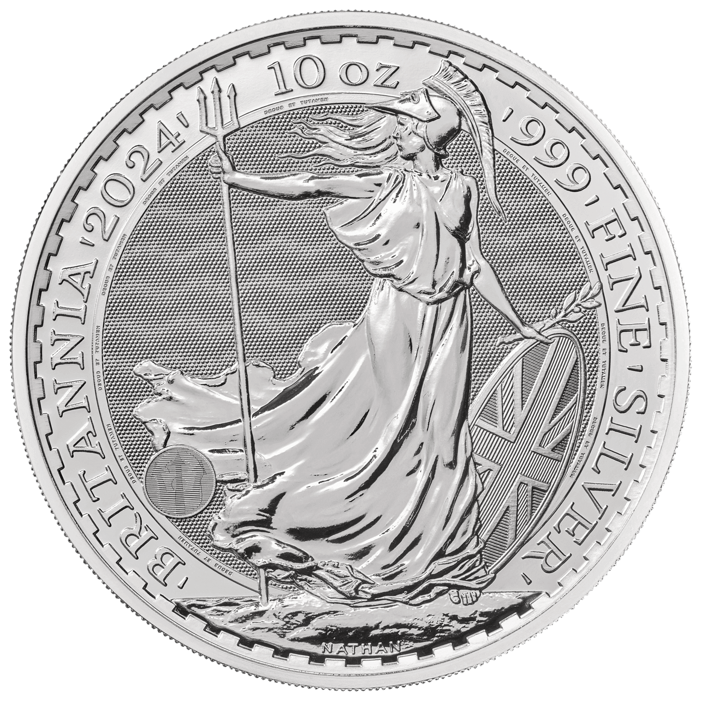 This substantial minted silver bar contains 10 troy ounces of 999 silver and is the second-largest bar in the Britannia range. The design features a new interpretation of Britannia, the spirit of a nation, brought to life by The Royal Mint’s Coin Design team and the Principle Designer Jody Clark.