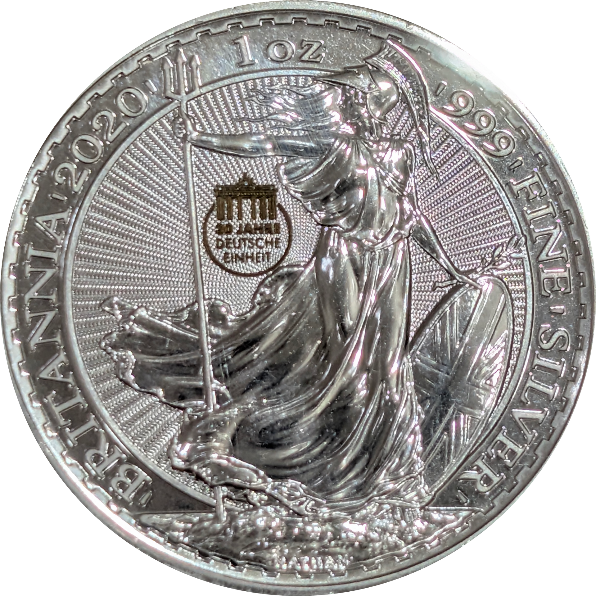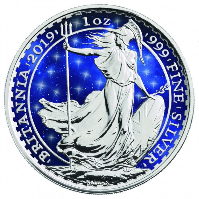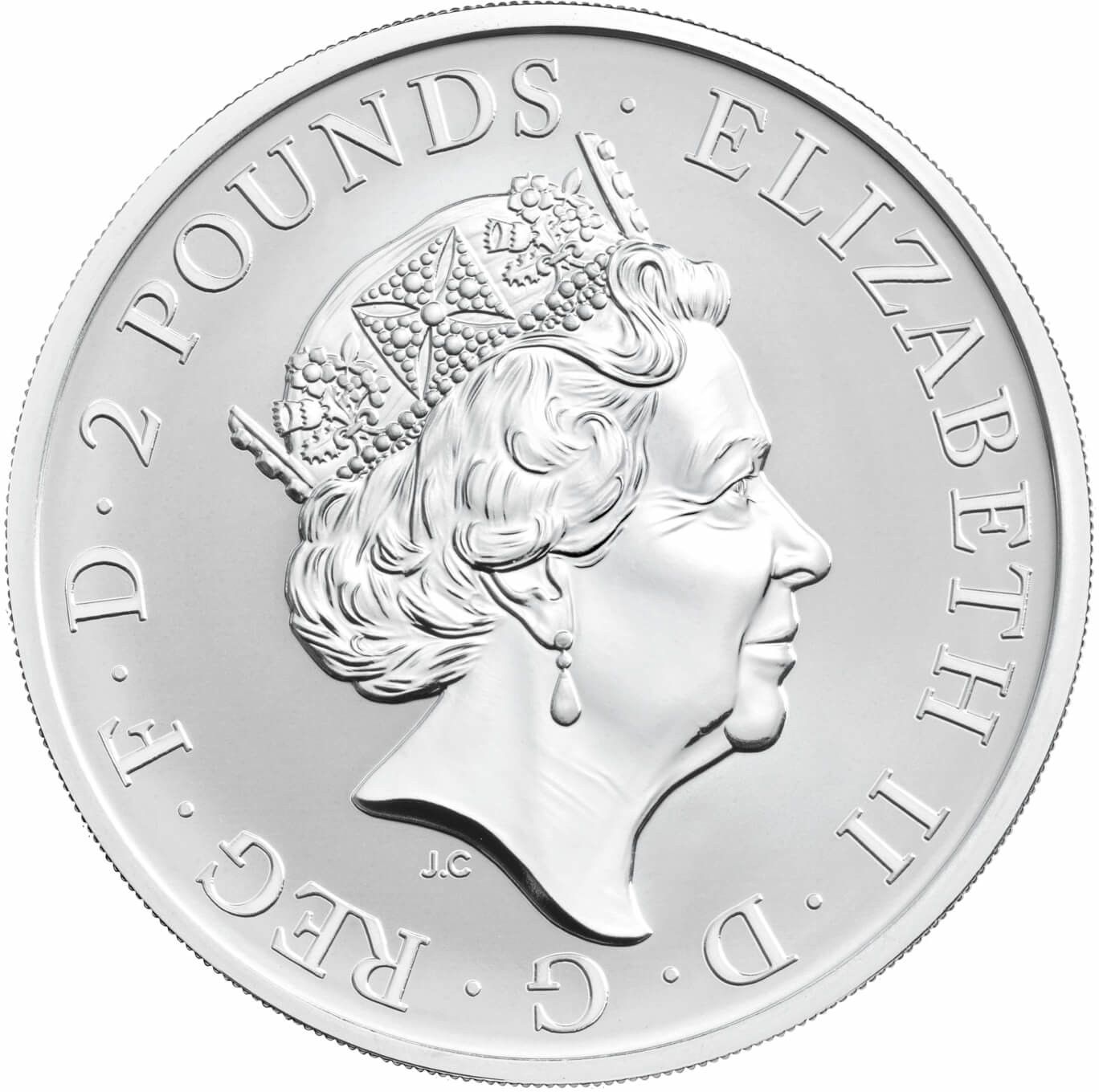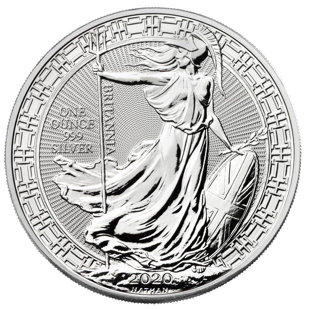 2017 saw the first silver twenty-ounce coin issued in the United Kingdom; it was released to mark the twentieth anniversary of the silver Britannia range. The obverse features the classic effigy of Her Majesty, Queen Elizabeth II. The reverse features Britannia with Corinthian Helmet, shield and trident. Her body is comprised of the map of England, Scotland and Northern Ireland. This issue has the special 20th Anniversary Trident Privy mark located prominently to the right of Britannia.