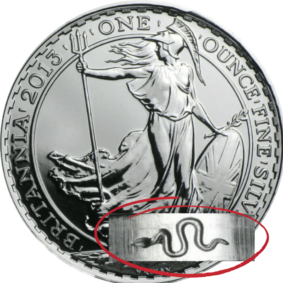 Since 2013, the Royal Mint has struck a special version of it's 1oz silver coin. Produced for American bullion dealer A-Mark Precious Metals, the coin has struck into its edge a privy mark symbolising the lunar year of issue.
