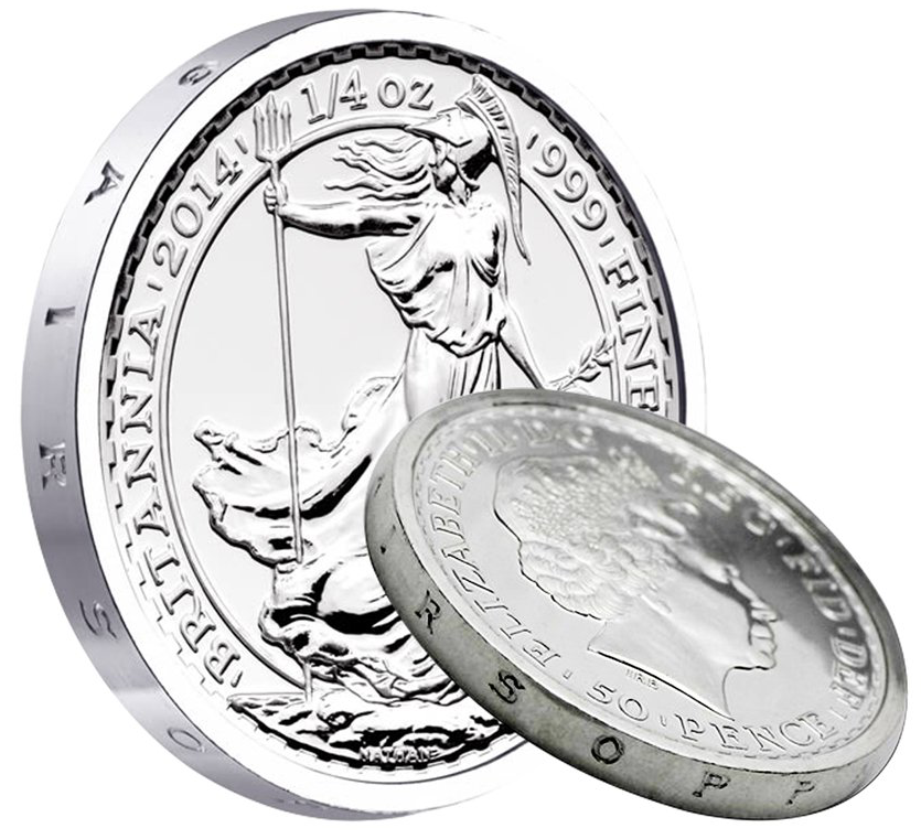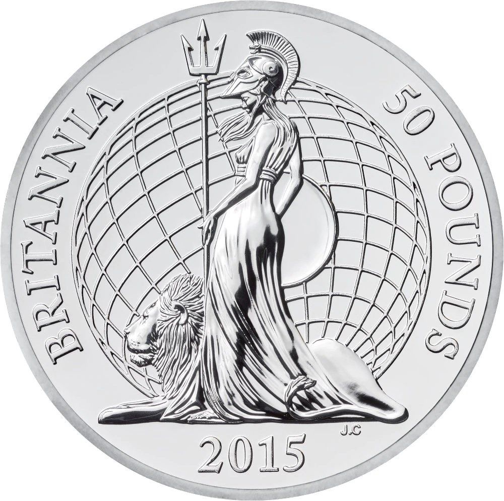In 2015 for the first time in history, the Royal Mint released a very special Limited Issue Britannia £50 Fifty Pound Silver Coin struck in solid fine .999 Silver weighing one ounce of fine pure Silver (sold in a sealed pack).