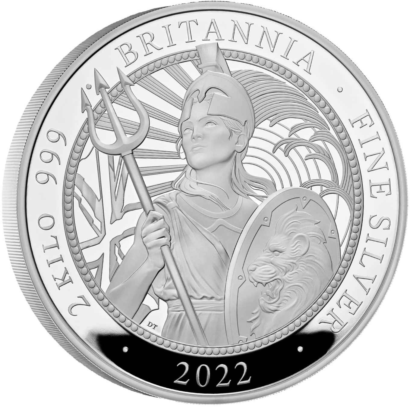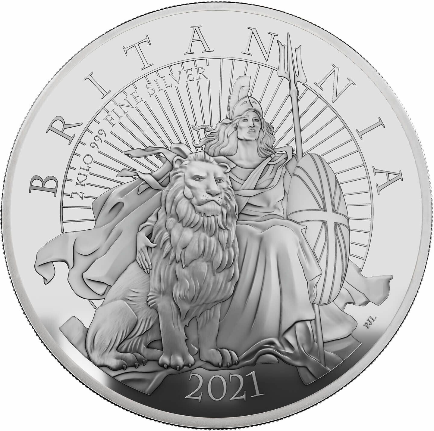 The 2021 Silver Proof 2kg Britannia is the first 2kg Britannia to be issued by the Royal Mint. The design by P J Lynch features a proud standing Britannia with the lion. The coin is made of 0.999 fine silver, and comes boxed with a certificate of authenticity.