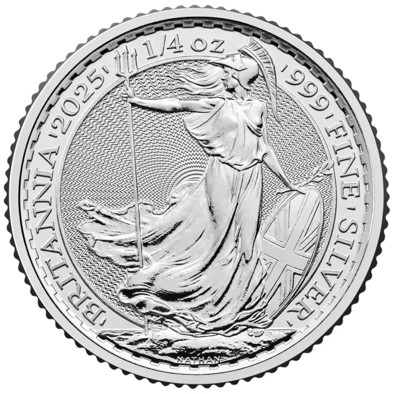 The quarter-ounce silver Britannia from the Royal Mint has been struck from silver brought up from the wreck of the freighter SS Gairsoppa, recovered by the Odyssey Marine Exploration. Made from 0.999 silver and weighing 7.83 grams, the edge detail has the name of the ship struck into it. Mintage in this form is limited to 20,000 pieces.