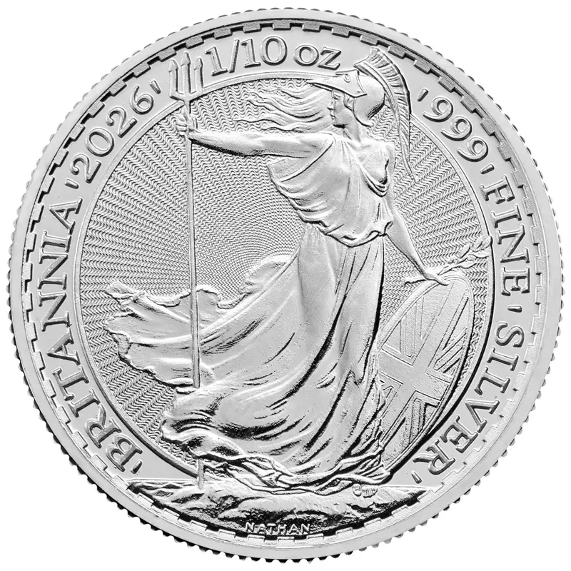 In 2006, the Royal Mint re-issued for the first time the "definitive" Standing Britannia type of tenth-ounce silver coin which was first issued in 1998. Struck in a tenth-ounce of 999 fine silver, this is the smallest silver coin in the Britannia range. 16.50mm diameter, 999 Silver.