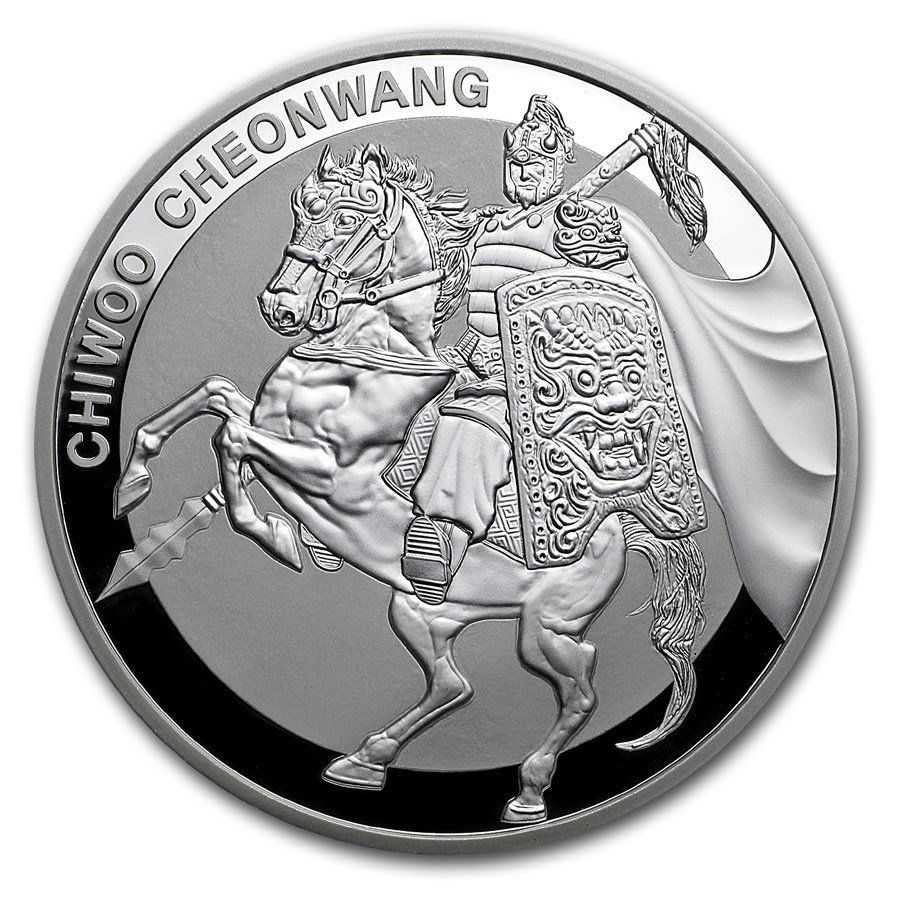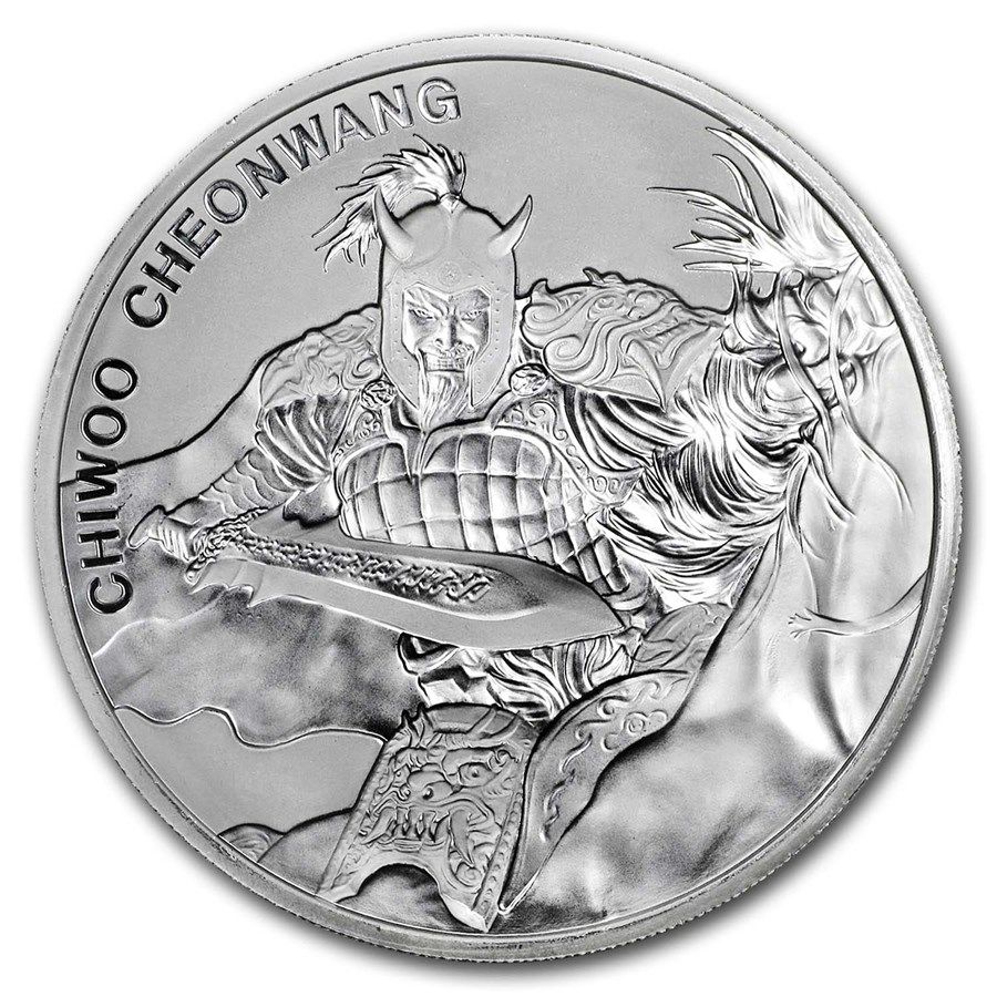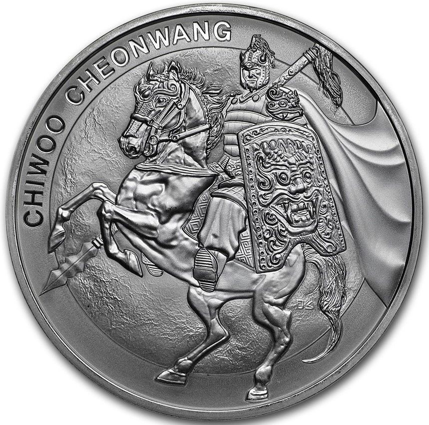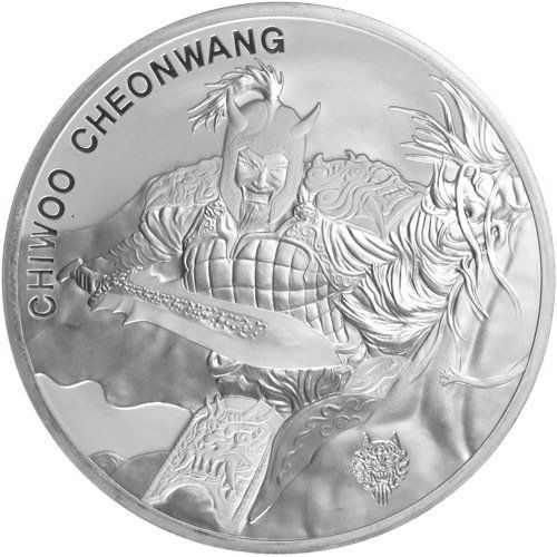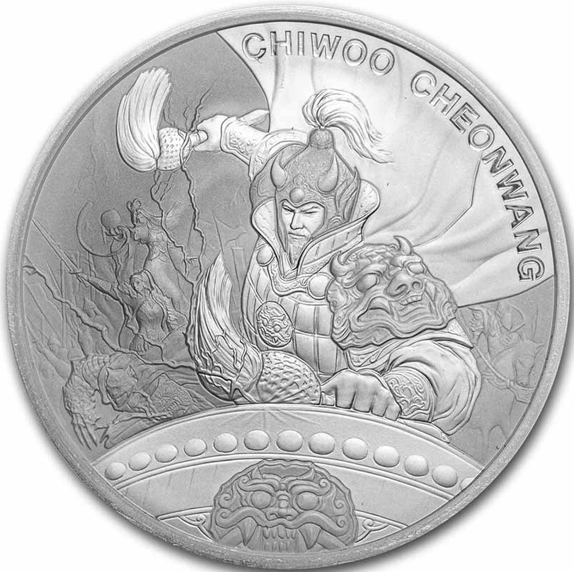 2oz - 2018 marked the first ever release of the 2oz Silver Incuse Chiwoo Cheonwang. Containing 2oz of .999 fine Silver and featuring an incuse finish (A element of design or lettering that is in a sunken form, i.e. not raised). Released with a limited mintage of 15,000.