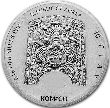 10oz - The obverse face of 10 oz South Korean Silver Chiwoo Cheonwang Medals comes with the image of Do ggae bi. This figure is used on the shield of Chiwoo Cheonwang and features on the obverse of all medals in this series, as well as select other programs from KOMSCO. Value 10 Clay, Composition Silver (.999), Weight 311g
