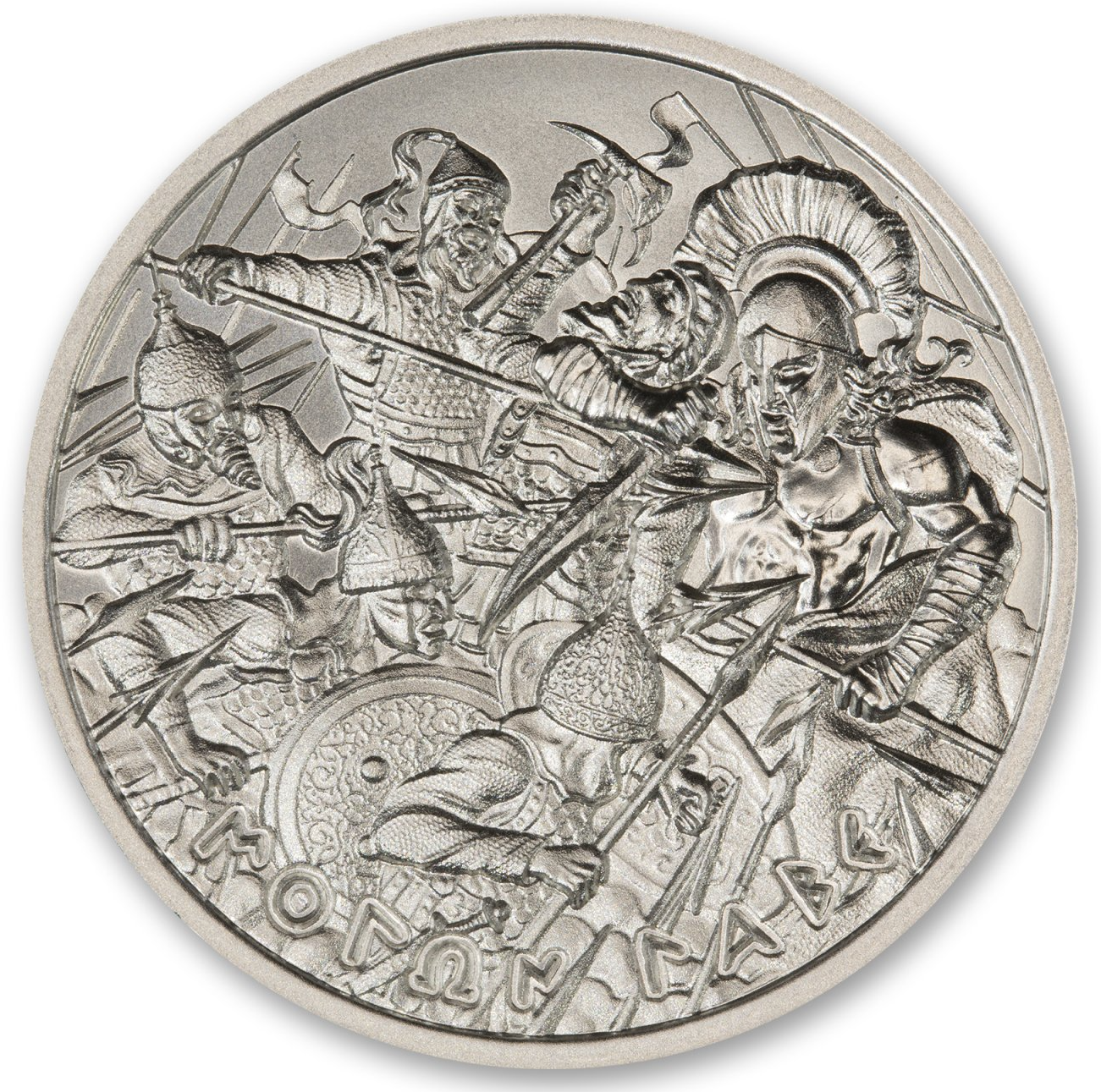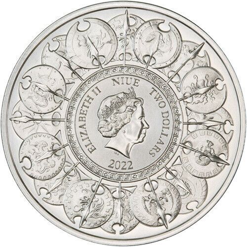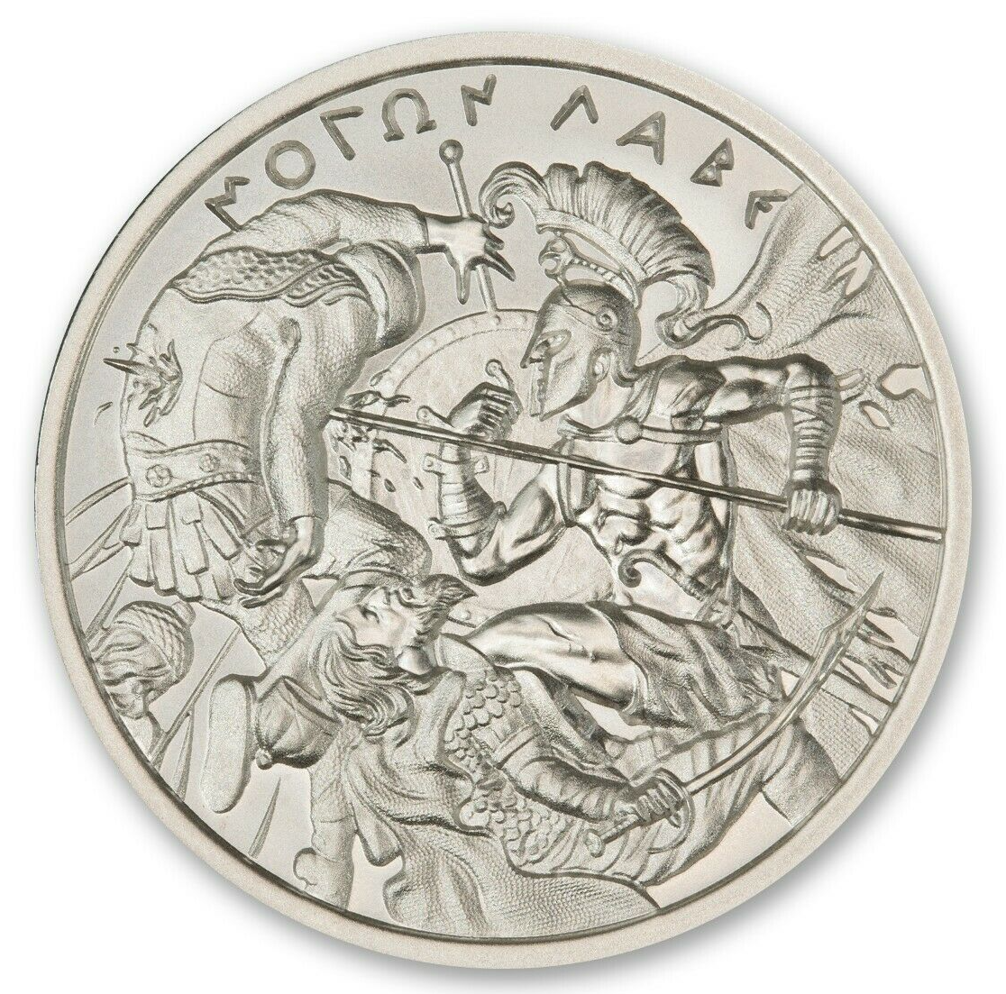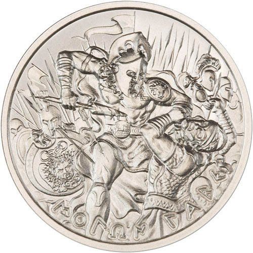 In 2022 a 1oz series was released (dated 2022) as a non-circulating legal tender 1oz bullion coinage. Issued a face value of $2 (NZD) by Niue, with Queen Elizabeth II on the obverse. Each 2022 1 oz Niue Silver Molon Labe Coin was made available in 2 variations (Type I & Type II) both in BU condition and with a limited mintage of 1,500 each.